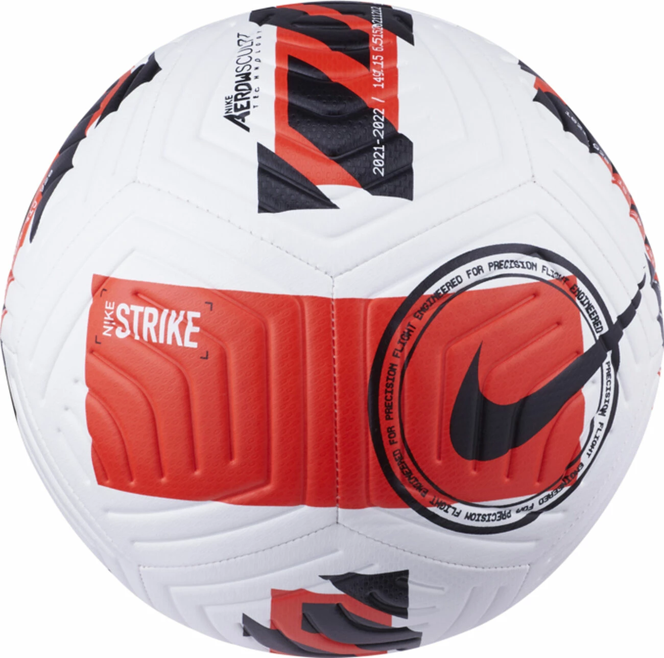 Le ballon de football Nike Strike est prêt à voler au fond des filets. Un boîtier texturé et des rainures de stabilisation vous aident à placer la balle là où vous le souhaitez. Les rainures Nike Aerow Trac permettent une rotation constante lorsque la balle est en l’air. Le boîtier texturé offre un toucher et une sensation agréables sur votre pied. Le boîtier cousu à la machine optimise la forme, la sensation et la durabilité. La conception à 12 panneaux offre un vol de balle vrai et précis. La vessie en caoutchouc aide à maintenir la pression de l’air et la forme.